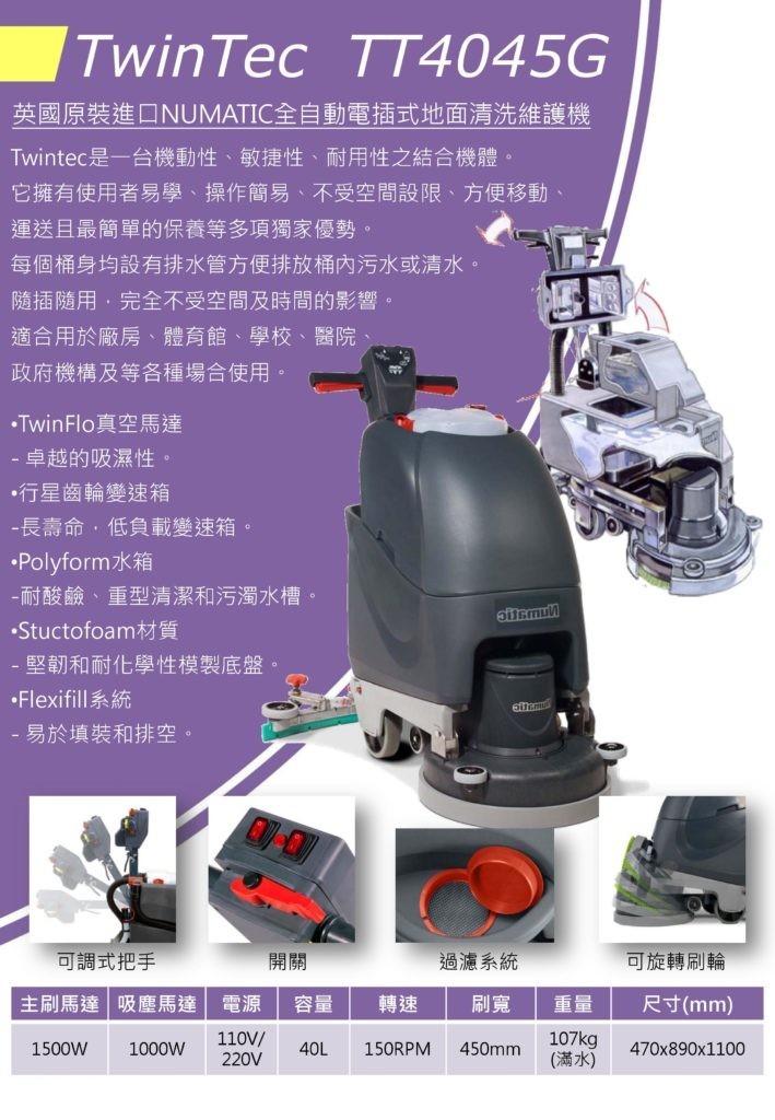 NUMATIC-TT-4045自動洗地機 插電式自動洗地機