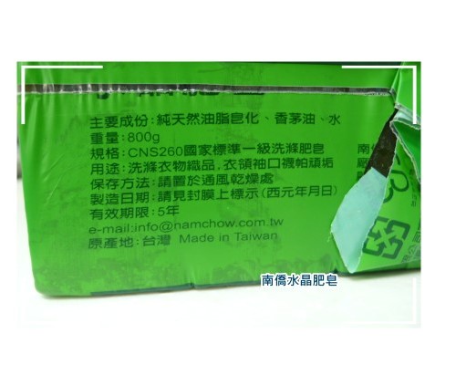 南僑水晶肥皂主要成份:純天然油脂皂化,香茅油,水