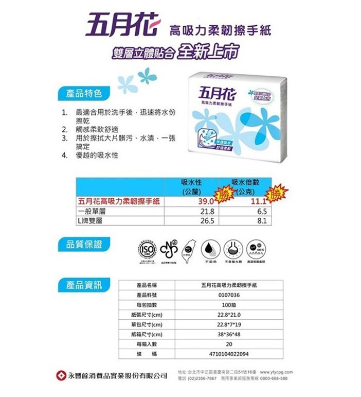 FSC™驗證 五月花高吸力柔韌擦手紙100抽 20包
